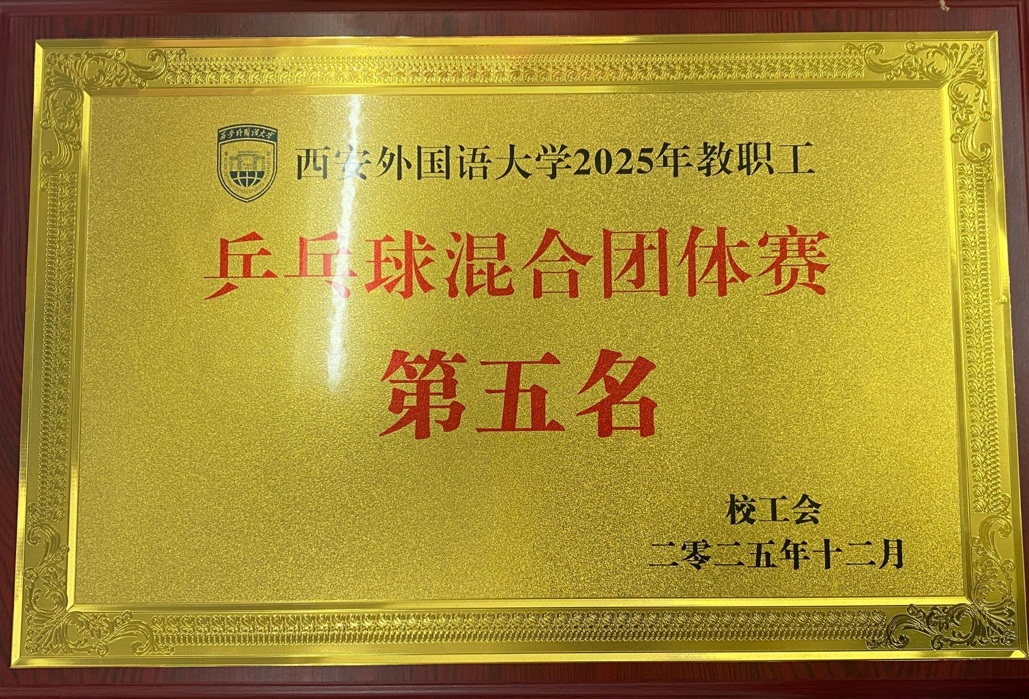 西安外国语大学2025年教职工乒乓球混合团体赛第五名
