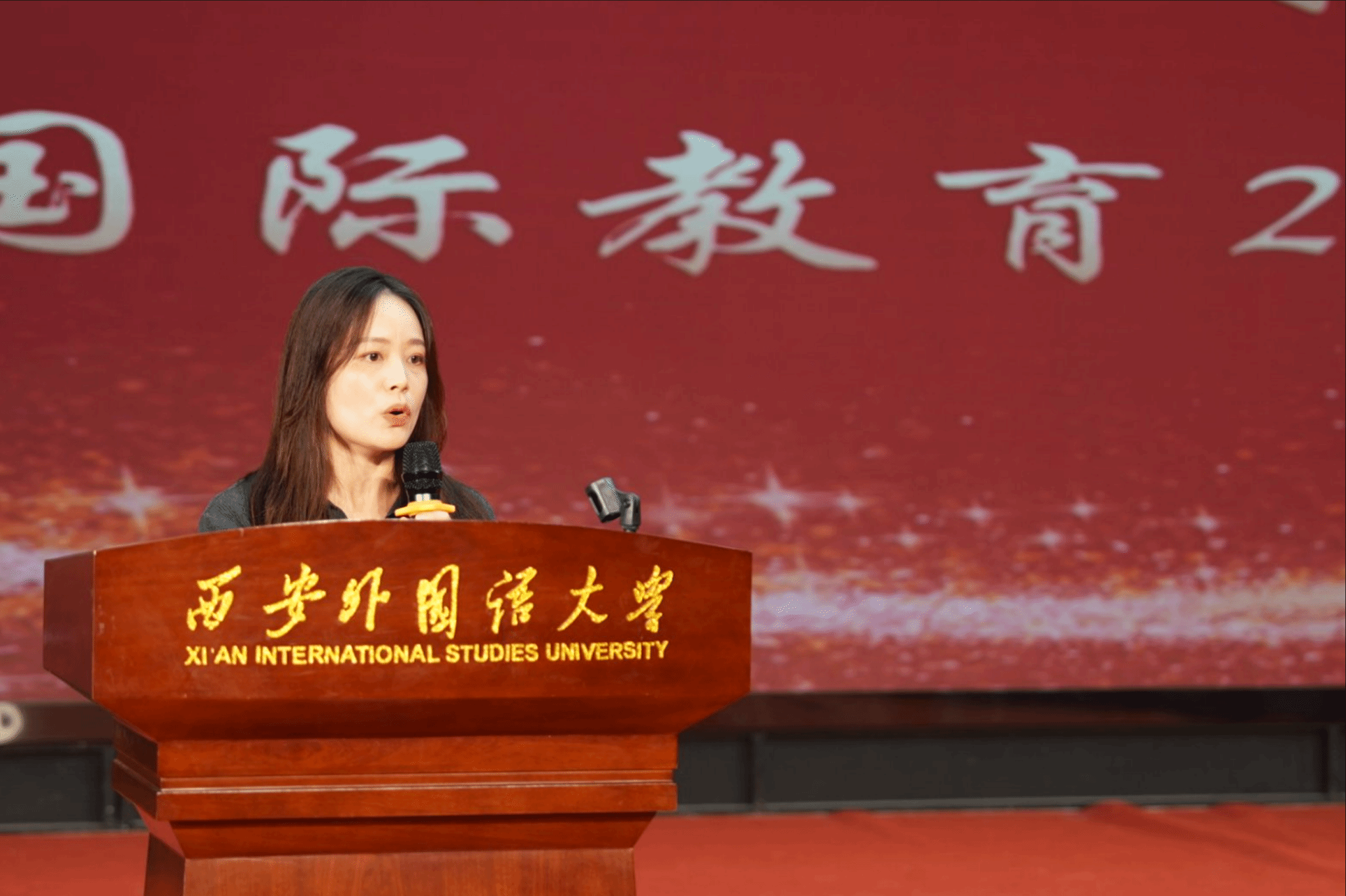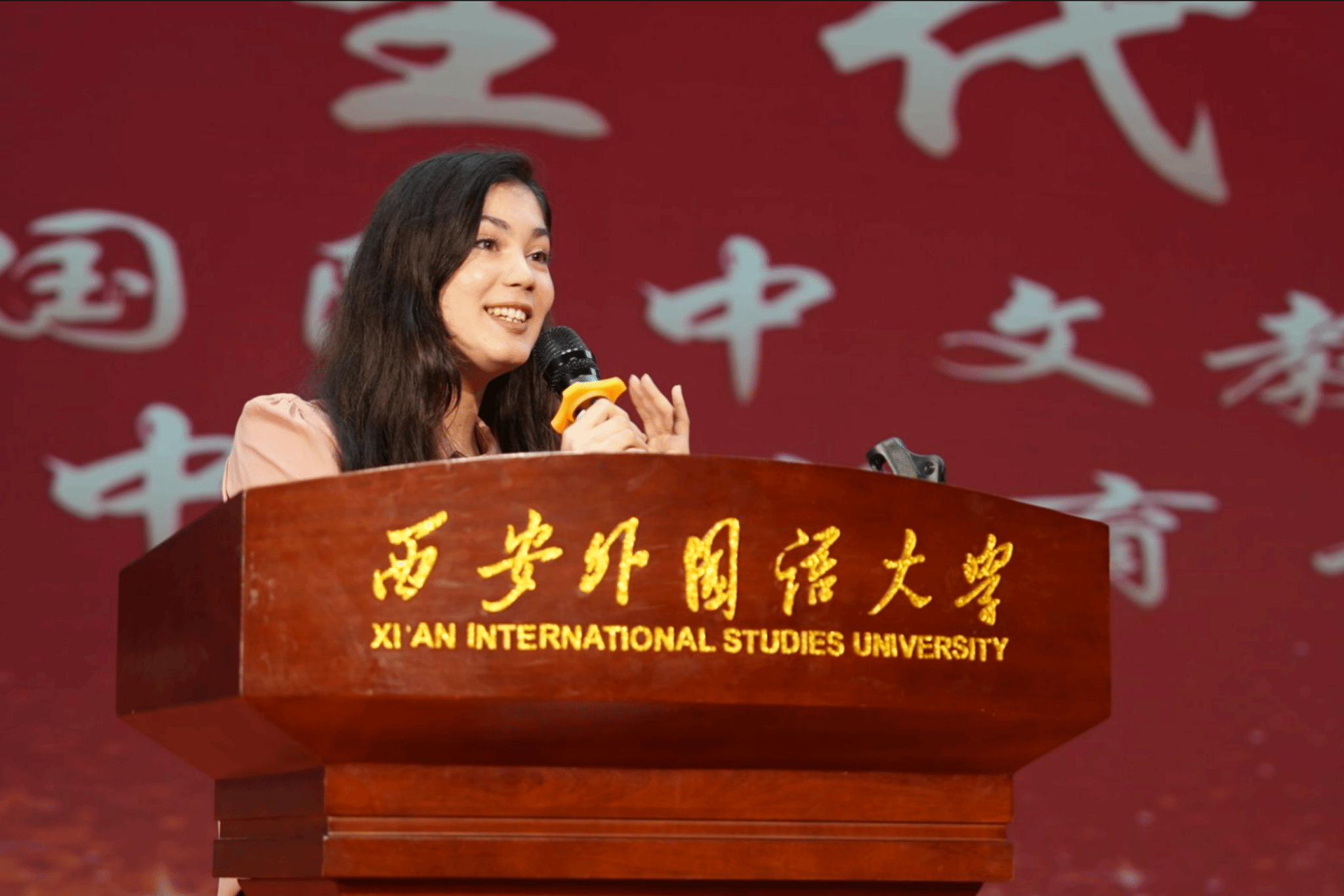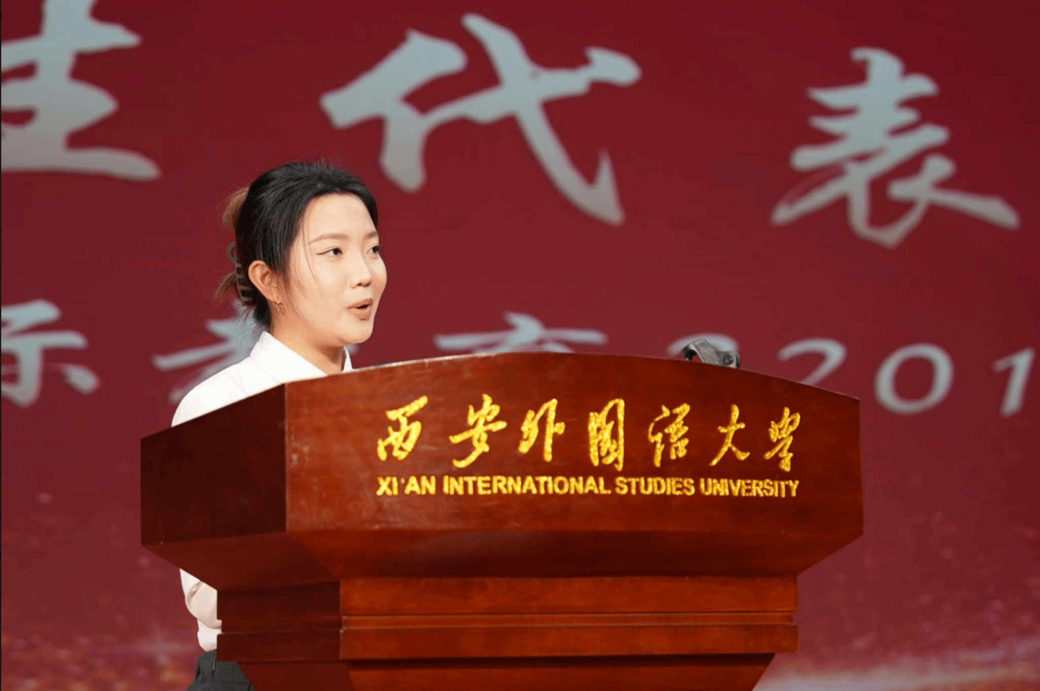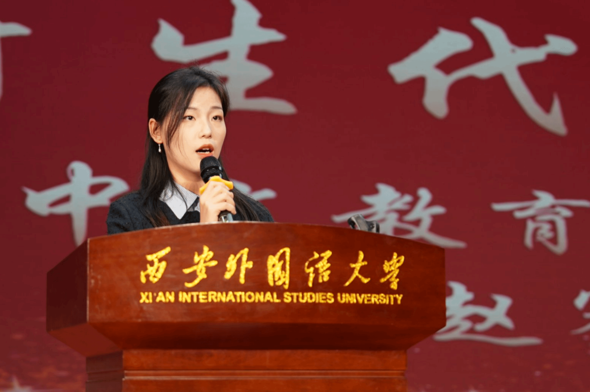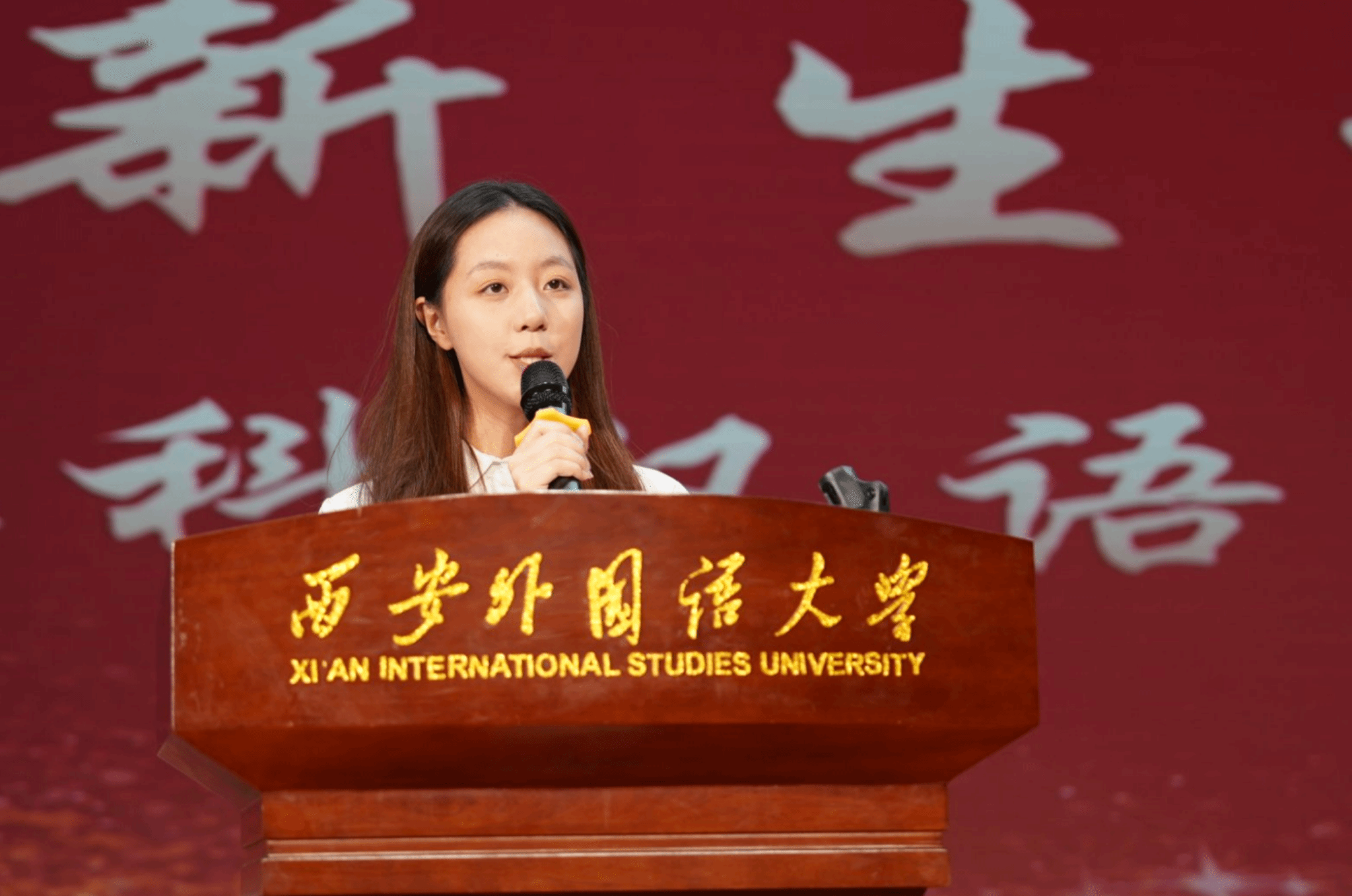 国际中文教育专业硕士新生赵赛君表达了作为新生代表的激动与荣幸,称选择西外是双向奔赴,她指出,中文是世界读懂中国的“文化密码”,承诺将扎实学习、理解传统文化,未来讲好中国故事,以西外人担当在国际中文教育领域发光发热。