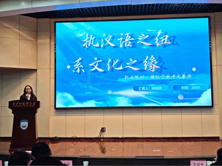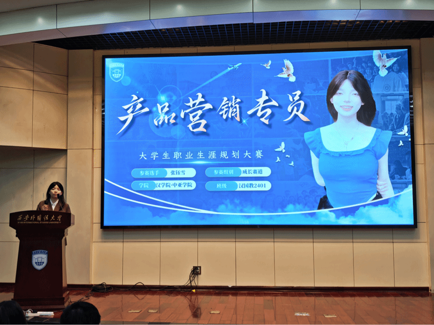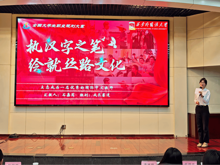 在成长赛道中,选手们展现了聚焦专业本身、创新探索新路径的毅力与视野。石嘉芮同学以“执汉字之笔,绘就丝路文化”为主题,立志成为一名优秀的国际中文教师,将语言教学与文化传播紧密结合;张钰雪同学则聚焦产品营销,探索创新路径,彰显了汉教人在跨领域融合中的灵活思维……同学们依托详实的自我分析与市场调研,勾勒出一幅幅立足汉语国际教育学科本色、面向广阔国际舞台的成长蓝图。这些规划不仅呼应了“一带一路”背景下对复合型、国际化人才的迫切需求,更展现了新时代青年将个人成长与国家战略、时代潮流同频共振的深刻自觉。