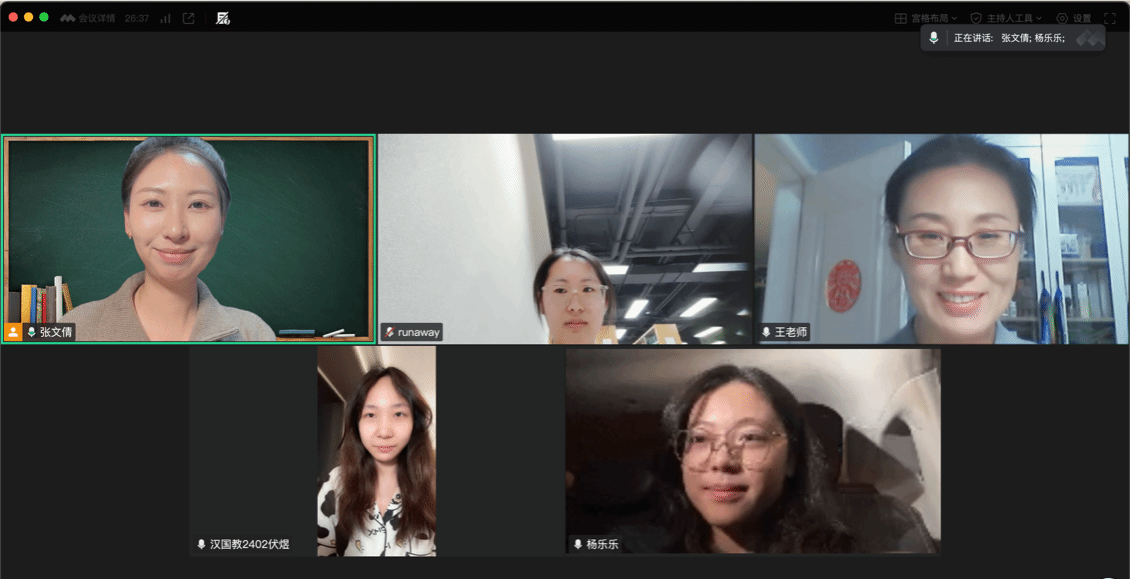 点评环节中,指导教师浮根成、杨浩亮、杨少戈、顾清、王俊英、张文倩结合前期评审情况,从语言点讲解、教学活动设计、镜头运用、剪辑技巧等方面给出切实可行的优化建议。同时传达了留学生群体的反馈意见,包括强化案例实用性、增加互动提问等具体建议。三位同学认真聆听、积极交流,纷纷表示此次点评为提升教学能力与创作水平提供了重要指引。