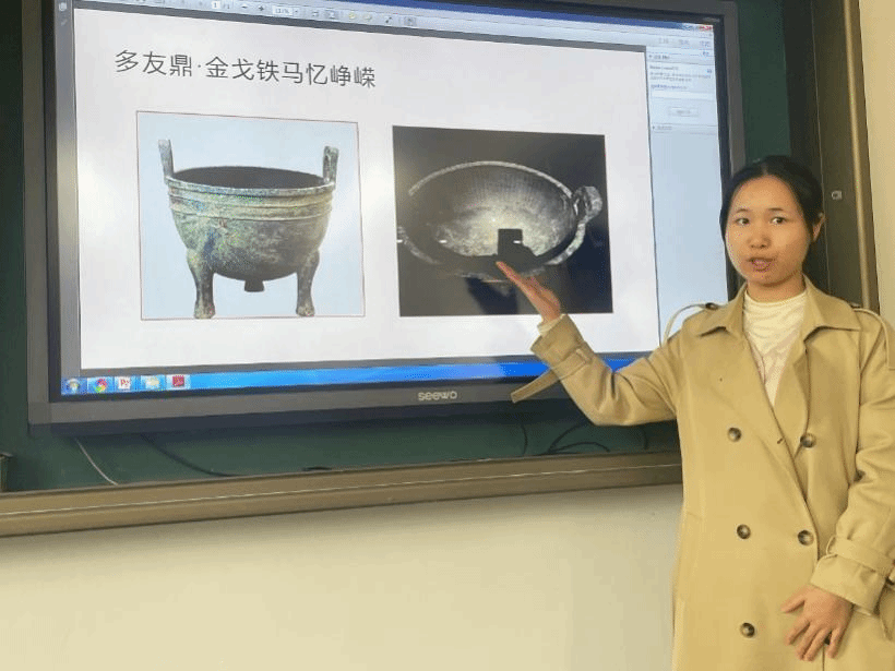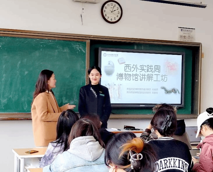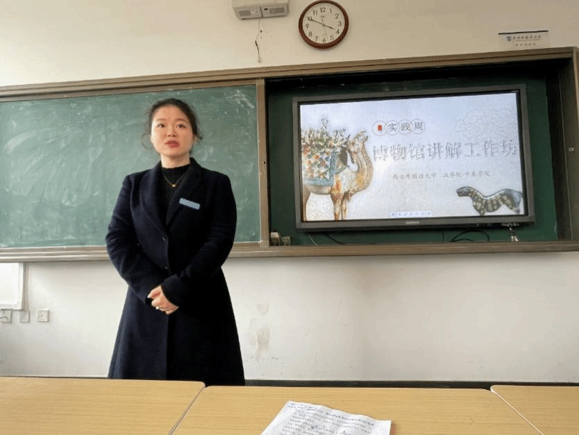 11月10日至14日实践周期间,汉学院开展了“博物馆讲解工作坊”的这一实践活动,由张艺航老师来组织指导,并且邀请到了陕西历史博物馆的两位讲解老师,她们分别是张誉婷老师和高静怡老师,两位老师在10日周一的时候为我们讲解了她们平常的工作内容,如何为游客讲解文物,还有在讲解文物时一般要讲解什么,比如讲解它的出土时间,文物具体的年代,用途,还有文物的故事。