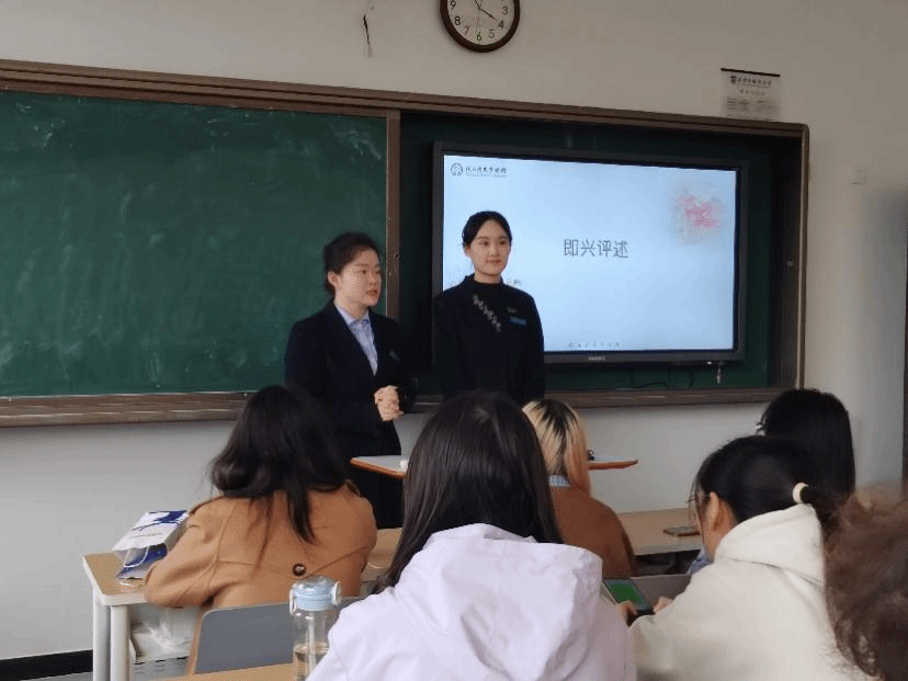 张誉婷老师和高静怡老师仔细观察了每位学生的表现,一一记录下优点与不足,也通过提问锻炼了他们的反应能力。在点评环节,她们不仅肯定了学生们的努力,也纠正了讲解时出现的一些小错误,提出了精准而富有建设性的指导意见,例如讲解时的语速应当适中,中英讲解的差异等。