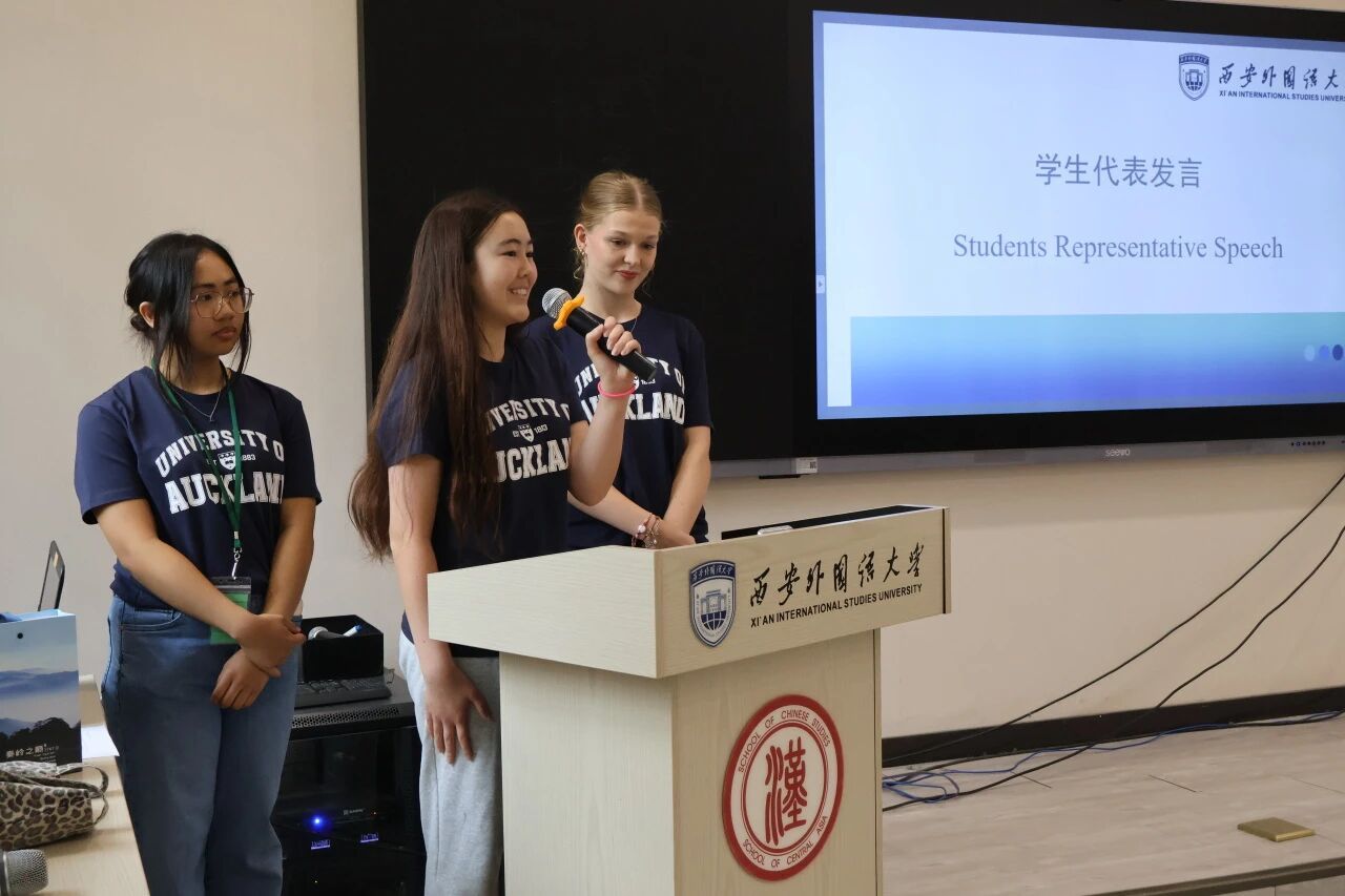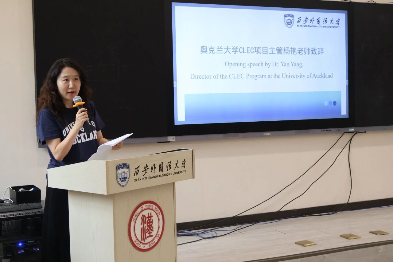 杨艳在致辞中首先向教育部中外语言交流合作中心、西安外国语大学及新西兰合作院校表示衷心感谢。她表示,今天他们跨越重洋,从新西兰来到千年古都西安,不仅是为了学习汉语,更是为了用脚步丈量中华文明的深度。她坚信,在接下来的行程里,每一个瞬间都将成为他们理解中国、连接彼此的珍贵记忆。她勉励学生们勇敢拥抱这段旅程,用眼睛去观察,用语言去交流,用心去感受。