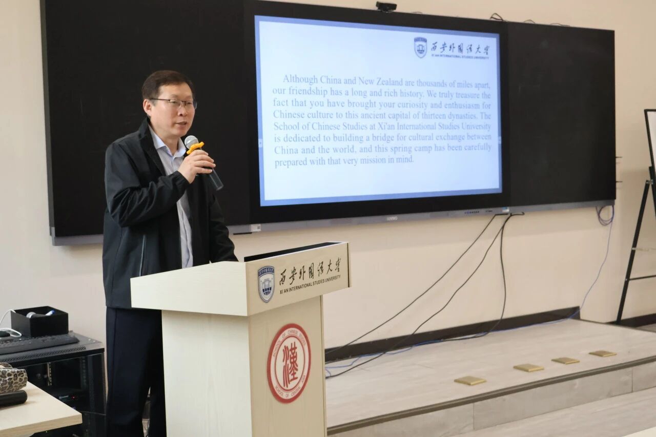 庞晨光在致辞中对新西兰师生的到来表示热烈欢迎。他指出“汉语桥”项目对于推动中外文化交流具有重要意义,鼓励营员们积极参加各类文化体验活动,主动用汉语与中国朋友交流,感受西安这座千年古都的独特风貌和风土人情。他希望同学们以此次春令营为契机,为中新两国的人文交流、文明互鉴做出青年人应有的贡献,争取成长为文化交流的友好使者。