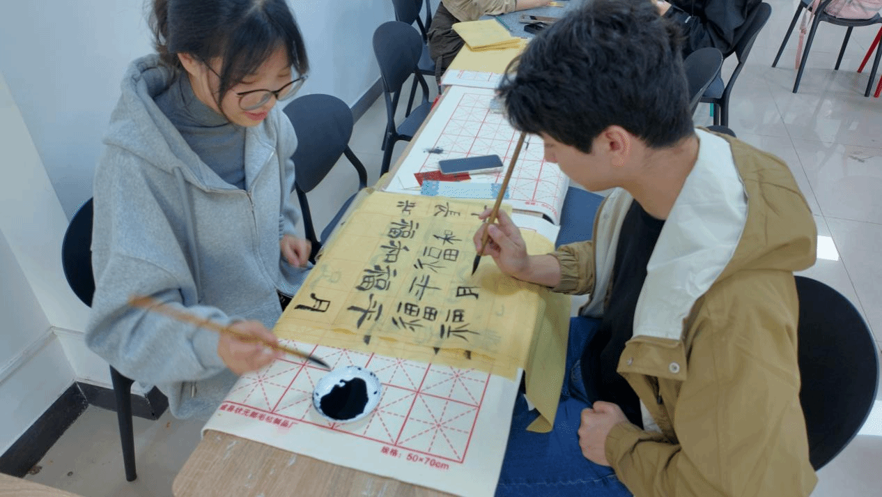 书法体验区则成为留学生的打卡热点。在雅宣阁社团的专业指导下,留学生们挥毫泼墨,体验中国传统工艺与书法的精妙。