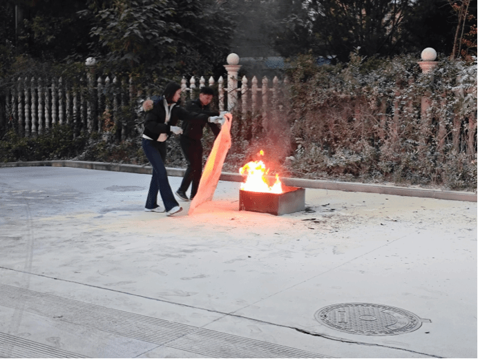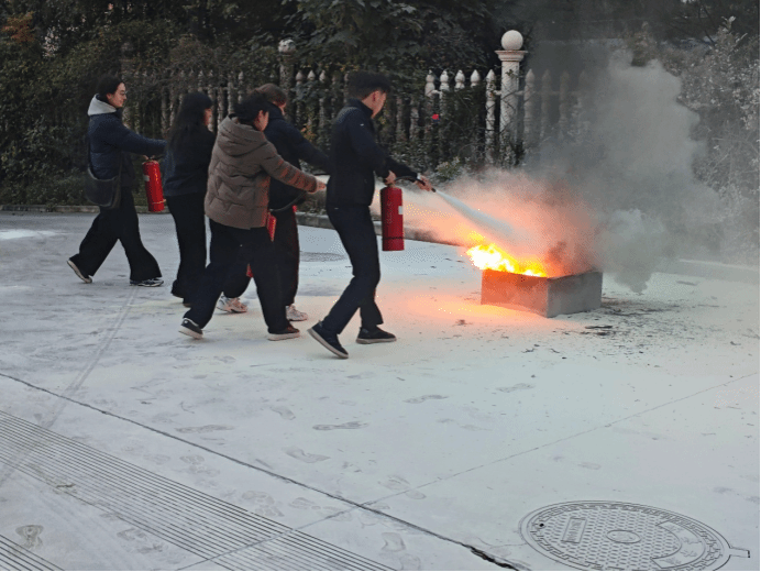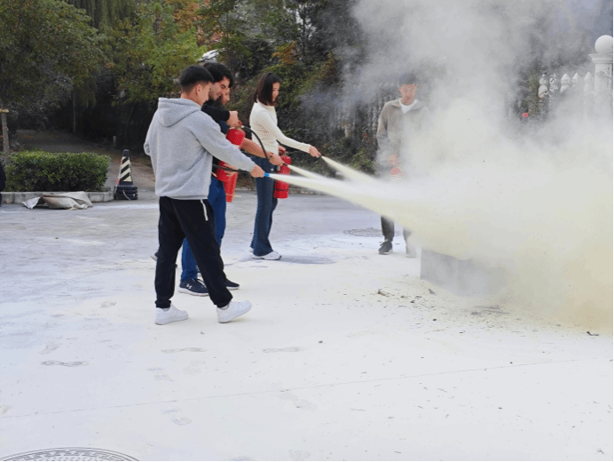 在专业人员指导下,留学生们还轮流操作了手提式干粉灭火器,熟悉“提、拔、握、压”的操作步骤,并学习了灭火毯的正确使用方法。通过亲手实践,大家初步掌握了扑灭初起火灾的基本技能。