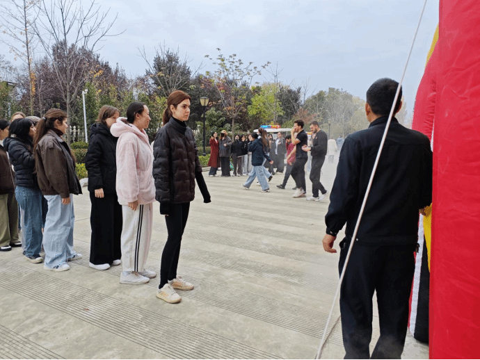 理论讲解结束后,全体参与学生在老师的引导下,前往启智楼前指定区域,进入模拟真实火场的“消防疏散演练帐篷”。在黑暗、浓烟的环境中,留学生们进行了一次紧张有序的疏散演练。大家严格遵循所学知识,低姿、捂口鼻、沿墙前行,亲身体验了在紧急情况下保持冷静、迅速撤离的关键步骤。