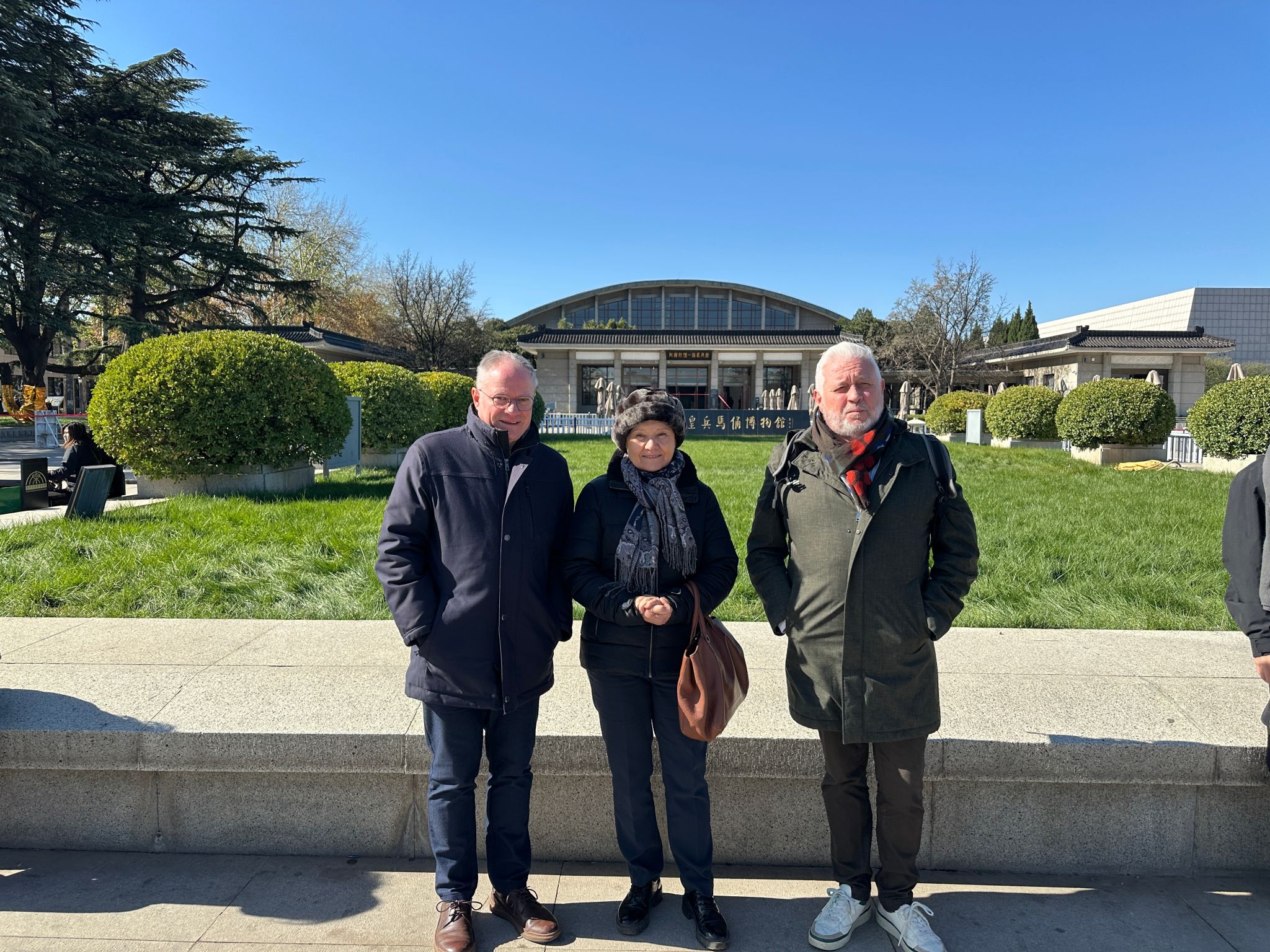 11月18日上午,代表团访问了西安外国语大学附属学校,感受中国教育的活力,与师生进行了深入交流。整场交流氛围轻松热烈,促进了中法中小学教育领域的交流与合作。下午,代表团前往世界文化遗产秦始皇兵马俑博物馆参观,感受中国古代文明的恢弘与气魄。晚间,代表团在陕歌大剧院享用传统饺子宴,并欣赏了精彩的仿唐乐舞表演,深入感受盛唐文化的独特韵味与艺术魅力。